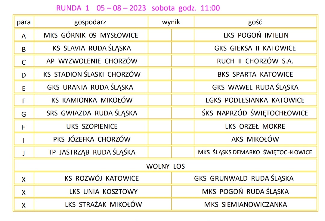 W I rundzie (5 sierpnia) „Zieloni” mają wolny los, a w kolejnej – tydzień później – czeka ich wyjazdowy pojedynek w Śmiłowicach ze Strażakiem (Klasa B).